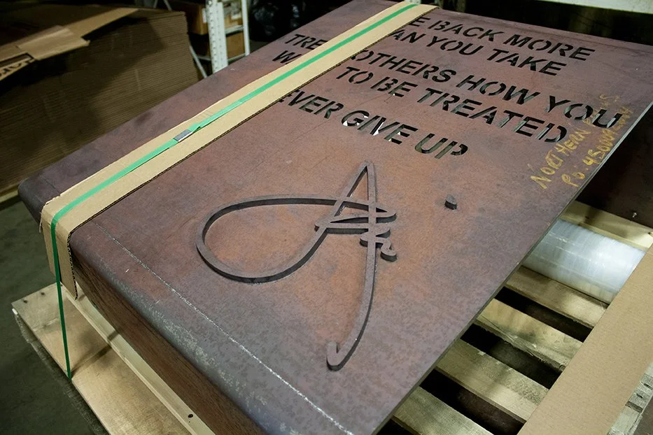 Cor-Ten (or CORTEN) steel can be used to manufacture industrial looking signs and decor products. We have utilized this material in a number of projects where long term weather resistance was required, while achieving a unique industrial look. The character of the steel has become widely appreciated in the design and architectural communities, making it useful in modern and vintage landscapes and living spaces alike. In addition to signs, Cor-Ten can also be used for custom fabricating outdoor planters, retaining walls, fences, decorative screens, panels, industrial components and many other metal fabricated products. Various gauges and thicknesses are available in sheets that can be laser cut and custom fabricated into fully finished products. The most common gauges and thicknesses in our portfolio range from 11 gauge up to 3/8″, with lighter and heavier options available when required by the project.